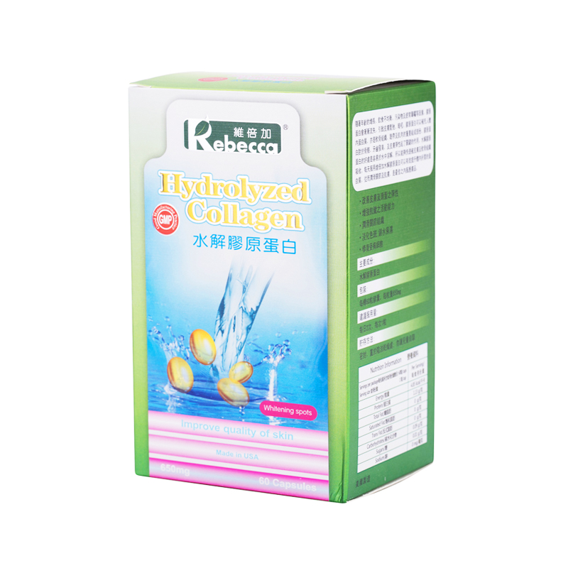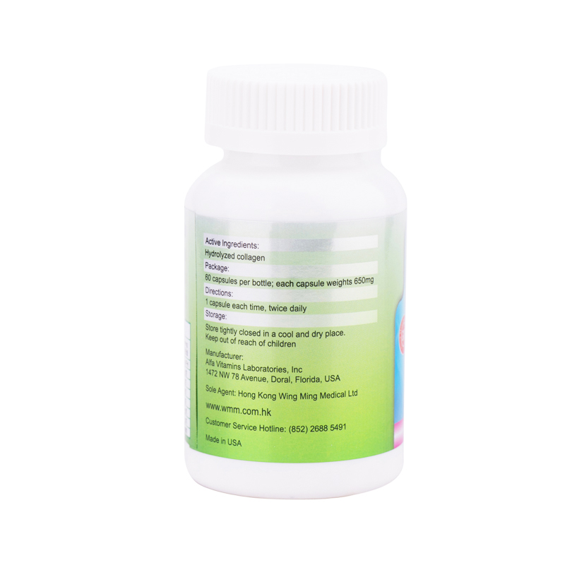 5.隨著年齡的增長,飲食不均衡、污染物及經常曝曬等因素,膠原蛋白會漸漸流失,引致皮膚鬆弛、暗啞。膠原蛋白是身體中最天然及豐富的蛋白質,占體內所胡蛋白質的三分之一,分佈於皮膚、肌肉及骨骼之中。肌膚中的骨膠原和彈性蛋白都是由真皮層裏的纖維細胞製造。對於骨骼、牙齒發育,及皮膚彈性起了關鍵作用。水解膠原蛋白的好處是容易溶於水中溶解,所以能夠快速被皮膚及軟骨組織吸收。每天服用維倍加水解膠原蛋白可以有效提升體內所需的蛋白質,令肌膚保持緊致、具有彈性及防止皺紋的出現,是最佳之內服護膚品。